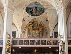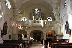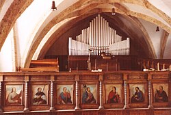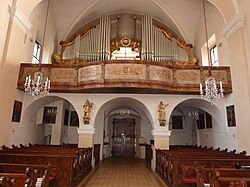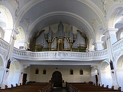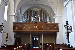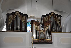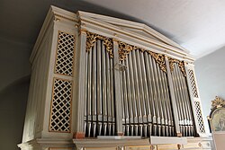 II/P | 35 | In mehreren Etappen erbaut. Im Jahr 2010 wurde das Orgelwerk bis auf das Manualwerk im barocken Originalgehäuse abgetragen.[21] |
