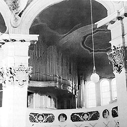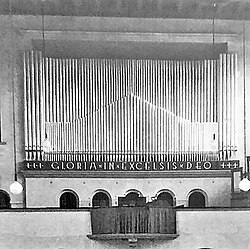 III/P | 42+8 | Neubau mit 8 Registern im Fernwerk.[11] Die Orgel wurde 1970 durch einen Neubau der Firma Walcker ersetzt. Dabei wurde ein Großteil des Pfeifenmaterials und der Prospekt in veränderter Form wiederverwendet. |