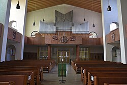 II/P | 12 | 2017 abgetragen, wurde 2018 durch ein Instrument von Linder ersetzt. → Artikel: Orgel |