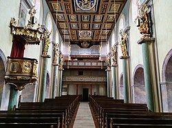 II/P | 39 | Die Orgel wurde am 4. und 5. November 1918 kollaudiert.[7] Im Zuge einer Kirchenrenovierung wurde das klingende Instrument 2019 von Mathis Orgelbau in das südliche Oratorium der Stiftskirche versetzt. → Mertel-Dreher-Orgel |