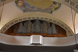 III/P | 58[9] | Umbau und Erweiterung der Swoboda-Orgel, auf 4 Werke (incl. Fernwerk), mit 2 Spieltischen[10] Neubau durch Mathis, 2003 → Artikel: Orgeln |