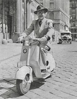 | Der Schauspieler Maxi Böhm auf einem Motorroller (Lohner L98) | Diese Datei ist ein Ausschnitt aus einer anderen Datei | Edition Ehn Bearbeitungen: Christoph Waghubinger ( Lewenstein ): Rand beschnitten, Tonwert angepasst, retuschiert / R8cocin8 : adjusted exposure | Datei:Maxi Boehm am Lohner L98.jpg | |