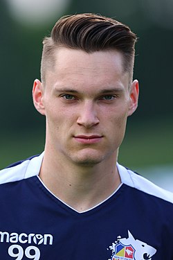 | Fußball-Qualifikationsspiel zur österreichische Bundesliga 2017-18 - SC Wiener Neustadt (weiße Trikots) vs. SKN St. Pölten (rote Trikots) 0:2. – Das Bild zeigt Maximilian Entrup (SKN St. Pölten). | Eigenes Werk | Steindy ( Diskussion ) 13:28, 5 June 2018 (UTC) | Datei:SC Wiener Neustadt vs. SKN St. Pölten 2018-05-31 (145).jpg | |