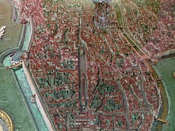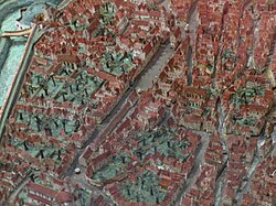 | Detail des maßstabsgerechten Stadtmodells von Augsburg von Hans Rogel. 1560-1563 gebaut, aus Fichten-, Linden- und Buchenholz, farbig gefasst, und Glas. | Eigenes Werk | Modell: Hans Rogel (ca. 1520 - 1592/1593). Foto: User:Neitram | Datei:Maximilianmuseum Augsburg Stadtmodell 1563 01.jpg | |