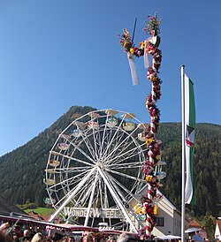 | Geschmückte Freiung und Riesenrad beim Maxlaunmarkt in Niederwölz | Eigenes Werk | BuRnZ | Datei:Freiung Riesenrad.JPG | |