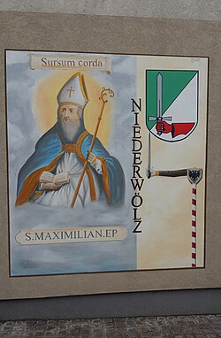 | Abbildung des Heiligen Maximilian von Celeia auf einer Hauswand in Niederwölz. | Eigenes Werk | BuRnZ | Datei:Heiliger Maximilian.jpg | |