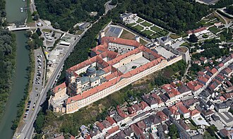 Luftbild des Benediktinerstifts Melk und seines Parks (Ansicht von Südwesten) | Eigenes Werk | Carsten Steger | Datei:Aerial image of Melk Abbey (view from the southwest).jpg |