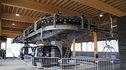 | Umlenkscheibe und Einstieg Talstation Mellaubahn in Mellau , Vorarlberg , Österreich . | Eigenes Werk | Asurnipal | Datei:Mellau-Talstation-Mellaubahn-Einstieg-03.jpg | |