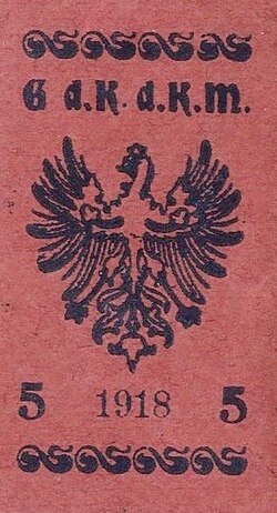 Außerdem war nun der Heller als Währung angegeben. Dabei hatte wenige Tage zuvor eine im Trentino gedruckte Heller-Marke unter italienischen Nationalisten so starken Protest ausgelöst, dass der Druck eingestellt und ein Restbestand verbrannt werden musste.[10]