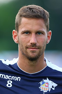 | Fußball-Qualifikationsspiel zur österreichische Bundesliga 2017-18 - SC Wiener Neustadt (weiße Trikots) vs. SKN St. Pölten (rote Trikots) 0:2. – Das Bild zeigt Michael Ambichl (SKN St. Pölten). | Eigenes Werk | Steindy ( Diskussion ) 13:22, 5 June 2018 (UTC) | Datei:SC Wiener Neustadt vs. SKN St. Pölten 2018-05-31 (081).jpg |
