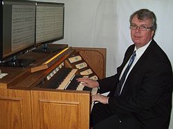 | Michael Stenov an der eigenen Viscount-Orgel fotografiert am 27. 8. 2014 | Eigenes Werk | Michael Stenov | Datei:Michael Stenov an der Orgel.JPG | |