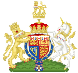 | Coat of Arms of HRH Prince Michael of Kent . (born 1942) second son of Prince George, Duke of Kent (fourth son of King George V) and Princess Marina of Greece and Denmark. The coat of arms was granted in 1962. “ Quarterly, 1st and 4th Gules three lions passant guardant in pale Or armed and langued Azure (for England), 2nd quarter Or a lion rampant within a double tressure flory-counter-flory Gules (for Scotland), 3rd quarter Azure a harp Or stringed Argent (for Ireland), with over all a label of five points Argent, the first, third and fifth points bear a cross Gules, and the second and fourth points bear an anchor Azure, the escutcheon ensigned by a coronet of a grandchild of the Sovereign, the whole surrounded by the ribbon and badge of the Royal Victorian Order as Knight Grand Cross, for a crest on a coronet of his rank, thereon a lion statant guardant Or crowned of the same coronet charged with a label as in the arms, for supporters, dexter a lion rampant guardant Or crowned by the same coronet, sinister a unicorn Argent armed, crined and unguled Proper, gorged with the same coronet, attached thereto a chain affixed thereto passing between the forelegs and reflexed over the back also Or, both charged on the shoulder with a label as in the arms. ” | Eigenes Werk | Sodacan | Datei:Coat of Arms of Michael of Kent.svg | |