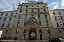 | ehem. k.k. Franz-Joseph-Militärakademie im 3. Wiener Gemeindebezirk. Das Gebäude Boerhaavegasse 13 gehört zur Rudolfstiftung. Das Gebäude Boerhaavegasse 15 wird heute als Schule genutzt. Quelle: GuentherZ Fotograf/Zeichner: GuentherZ Datum: 18. Februar 2006 andere Versionen: | Originally from DE.wikipedia ; description page is/was here . | Original uploader was GuentherZ at DE.wikipedia | Datei:GuentherZ Wien03 Landwehrakademie.jpg | |