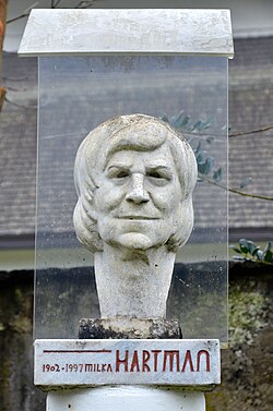 | Büste von Milka Hartman , geschaffen vom Slowenischen Bildhauer France Gorše im Kulturpark in Suetschach, Marktgemeinde Feistritz im Rosental , Bezirk Klagenfurt Land, Kärnten / Österreich / EU | Eigenes Werk | Johann Jaritz | Datei:Feistritz Suetschach Kulturpark Gorše Milka Hartman 15012014 638.jpg |