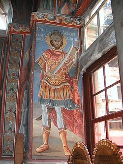 | Pravoslavna ikona Miloša Obilića kao svetog ratnika, u manastiru Hilandar. | http://lt.wikipedia.org/wiki/Vaizdas:Milos_Obilic_Hilandar.jpg | User:Dirgela | Datei:Milos Obilic Hilandar.jpg |