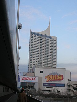 Das Gebäude hatte eine maximale Länge von etwa 110 Metern und verschiedene Höhen an verschiedenen Stellen, die von 27 bis 32 Metern reichten. Auf der Vorderseite befanden sich die Zugänge zu den Kinosälen auf drei Ebenen. Das große Atrium in der Mitte des Gebäudes wurde von zwei Rolltreppen, einer großen Ziegel-verzierten Wand und einer runden Glaskuppel am Dach geprägt. Links und rechts befanden sich die meisten der 14 Kinosäle, im hinteren Teil hatte die Kinderstadt Minopolis die meisten Themenstationen. Die rundlich, lässig fließenden Wände außerhalb und zum Teil auch innerhalb des Gebäudes machten es unverwechselbar. In den Untergeschoßen befand sich zusätzlich noch eine hauseigene Tiefgarage, die von der Reichsbrückengarageneinfahrt hinter dem Gebäude befahren werden konnte.