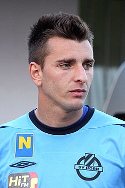 | Meisterschaftsspiel der österreichischen Fußball-Regionalliga Ost 1. SC Sollenau gegen SV Horn am 25. Mai 2012 in Sollenau 3:1 (3:0). – Das Bild zeigt Miroslav Milosevic (SV Horn). | Eigenes Werk | Steindy ( talk ) 07:10, 31 May 2012 (UTC) | Datei:1. SC Sollenau vs. SV Horn 2012-05-25 (42).jpg | |
