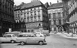 | Judenplatz, balra a Drahtgasse torkolata. | http://www.fortepan.hu/_photo/download/fortepan_58137.jpg | FOTO:Fortepan — ID 58137 : Adományozó/Donor: Jankovszky György. | Datei:Judenplatz, balra a Drahtgasse torkolata. Fortepan 58137.jpg | |