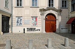 | Der Eingangsbereich des „Museums Judenplatz“ im 1. Wiener Gemeindebezirk Innere Stadt . Das Museum befindet sich im Misrachi-Haus und ist eine Zweigstelle des Jüdischen Museums im Palais Eskeles . | Eigenes Werk | C.Stadler/Bwag | Datei:Wien - Museum Judenplatz.JPG | |