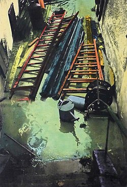 | Siebdruck "Leitern", 2007 (Linz-Urfahr, Hochwasser 2002) | Eigenes Werk | Dromedar61 | Datei:Monika Pichler Leitern 2007.JPG | |