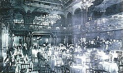 1910 hatte man den ehemaligen 1.000 Quadratmeter großen Ballsaal durch das Einziehen einer Betonzwischen-Geschoßdecke halbiert und das Kellergeschoß zum Theatersaal für Kabarett mit Tischen im Parkett und seitlich erhöhten Logen umgebaut.[2]