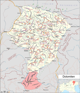 | Karte der Dolomiten nach der Alpenvereinseinteilung von 1984 mit Grappastock. | Eigenes Werk Map was created using: Open Street Map Italy_North_location_map.svg for location map | Artwork: Pechristener Location map: File:Italy_North_location_map.svg : NordNordWest | Datei:Karte Dolomiten mit Grappastock.png | |