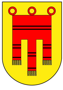 | Das Wappen der Tübinger : Eine Kirchenfahne mit drei Hängseln und drei Ringen (Farbe unbekannt) | Diese Datei wurde von diesem Werk abgeleitet: Wappen Werdenberger2.svg : | Wappen_Werdenberger2.svg : Marco Zanoli ( sidonius 16:18, 24 February 2007 (UTC)) derivative work: W!B: | Datei:Gonfanon of Tuebingen unknown.svg | |
