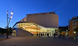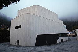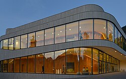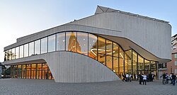 | Das Kultur Kongresszentrum Montforthaus 1 in Feldkirch wurde nach Plänen von Hascher Jehle Architektur 2014 fertiggestellt und am 2. Januar 2015 feierlich eröffnet. | Eigenes Werk | Feel free to use my photos, but please mention me as the author and if you want send me a message . or ( rufre@lenz-nenning.at ) | Datei:Montforthaus, 20h29.JPG | |
