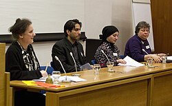 | Podiumssitzung beim Theologischen Forum Christentum - Islam 2010 ("Zeugnis, Einladung, Bekehrung. Mission in Christentum und Islam"). Von links: Dr. Jutta Sperber, Prof. Dr. Mouhanad Khorchide, Aysun Yasar, Prof. Dr. Ulrike Bechmann. | Selbst fotografiert | Max Bernlochner | Datei:Podium Theologisches Forum Christentum Islam 2010.jpg | |