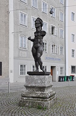 | Kapitelplatz Salzburg mit Skulptur "Sphaera" von Stephan Balkenhol, aufgestellt im Rahmen des "Kunstprojekts Salzburg 2007" der Salzburger Festspiele | Eigenes Werk | Photo: Andreas Praefcke | Datei:Salzburg Kapitelplatz Stephan Balkenhol Sphaera.jpg | |