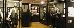 | Blick auf den Eingangsbereich des Museums 1915-18 in Kötschach-Mauthen. Zu sehen sind Figurinen mit italienischen bzw. österreichisch-ungarischen Uniformen. Im Hintergrund zeigen Bildwände historische Fotos der Gebirgsfront im Ersten Weltkrieg. | Eigenes Werk | DerDolomitenfreund | Datei:Eingang Museum 1915 18.jpg | |