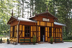 | Bahnhof Flachgau der Museumsfeldbahn Großgmain. Das Gebäude ist ein Nachbau der Station Zistelalm der 1928 eingestellten Gaisbergbahn. | Eigenes Werk | Herbert Ortner | Datei:Museum grossgmain bahnhof flachgau.jpg | |