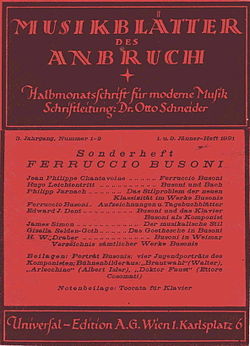 | Titelseite der Zeitschrift / Title page of the periodical | Eigenscan | Diverse | Datei:Musikblätter des Anbruch 1921 Titel.jpg | |
