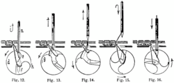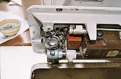 - Bei Kettenstichmaschinen wird anstelle des Spulenwickels der nächste Nadeleinstich verwendet, um die Verschlingung zu erzielen.