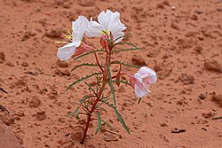 | Oenothera deltoides subsp deltoides in sand below hills by Soda Dry Lake, 3 km south of Baker, California | Eigenes Werk | Stan Shebs | Datei:Oenothera deltoides ssp deltoides 3.jpg |