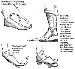 Wie die mehrkränzige Tonsur, die Schellen, die Gugel, die Marotte und andere Attribute stellen die Schnabelschuhe eine Verulkung der Geistlichkeit dar. Während Mönche oftmals – im Sinne der Askese und Demut – barfuß auftreten, schmückt sich der Narr mit teuren, pelzbesetzen oder samtigen Schuhen, die als Verzierung nach oben gebogen waren, was zusätzlich Material verbrauchte. Er macht sich daher der superbia, der Hoffart oder Eitelkeit schuldig, einer der sieben Todsünden. Die Todsünden haben einen engen Bezug zum Narren und zum Teufel; wer sich einer Todsünde schuldig macht, wird nach seinem Tod mit Höllenstrafen gepeinigt.