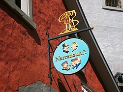 | Überlingen: Schild am Gebäude der Narrenzunft Überlingen. | Eigenes Werk | Roland.h.bueb | Datei:Überlingen-narrenzunft-sign.JPG | |