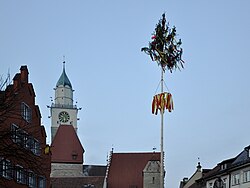 | Überlingen, Fasnet, Narrenbaum an der Hofstatt vor dem Hänselejuck 2015 | Selbst fotografiert | Photo: Andreas Praefcke | Datei:Überlingen Narrenbaum 2015.jpg |