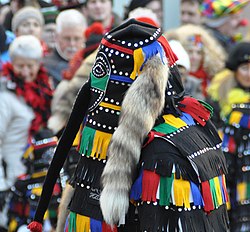 | Narrentag 2017 des Viererbunds in Rottweil Narrensprung am Sonntag, 22. Januar 2017, nachmittags Narren der Narrenzunft Überlingen, Narrenfigur: Hänsele | Eigenes Werk | Photo: Andreas Praefcke | Datei:Narrentag 2017 002.jpg | |
