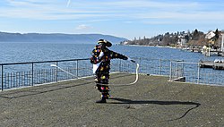 | Der Ueberlinger Haensele is snapping his Karbatsche (whip) on the shore of Lake Constance | Eigenes Werk | Adrian Wiemer | Datei:Schnellen am See prior to the Haenselejuck 2017.jpg | |