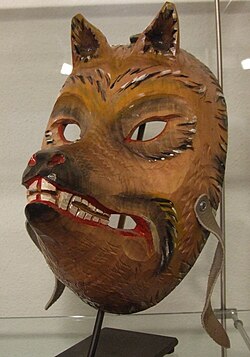 | Fuchsmaske aus Elzach, eine lokale Fasnachtsfigur, geschnitzt aus Lindenholz von Franz Lang, aufgenommen bei der Jubiläumsausstellung des Fasnachtsmuseums Speyer | Eigenes Werk | Claus Ableiter | Datei:Fuchsmaske aus Elzach.jpg | |