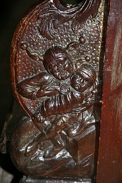| Rottweil, Dickes Weib mit Kind an der Kirchenstuhlwange im Heilig-Kreuz-Münster. | Original uploader was Earwig at de.wikipedia . ( Originaltext: Selbst fotografiert ). | -- Earwig 12:05, 21. Feb. 2010 (CET). | Datei:Dickes Weib Kirchenstuhlwange Heilig Kreuz.JPG | |