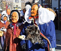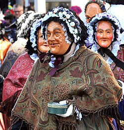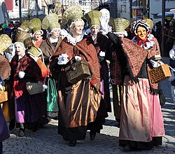 | Historischer Umzug der Narrozunft Villingen, Fasnetsmontag 2011 Alt-Villingerinnen und Morbele (ganz rechts) | Eigenes Werk (own photograph) | Photo: Andreas Praefcke | Datei:Villingen Fasnet Hist2011 006.jpg | |