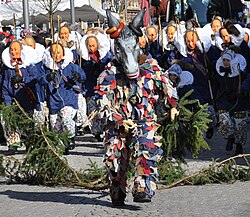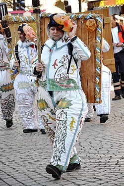 | Historischer Umzug der Narrozunft Villingen, Fasnetsmontag 2011 Morbili und Stachi (mit Surhebel-Scheme) | Eigenes Werk (own photograph) | Photo: Andreas Praefcke | Datei:Villingen Fasnet Hist2011 045.jpg | |