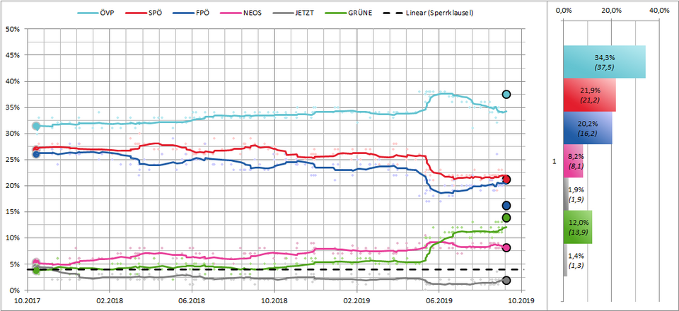 - ↑ OGM – Wahlprognose Nationalratswahlen 2019. 25. September 2019, abgerufen am 26. September 2019.