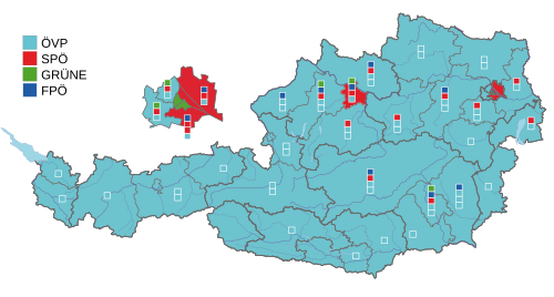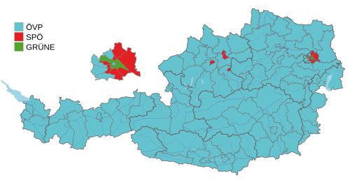 | ÖVP | 1.789.417 | 37,46 % | 71 | 1.595.526 | 31,47 % | 62 | +193.891 | +5,99 | +9 |