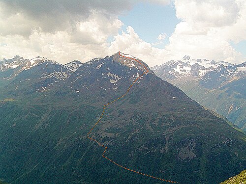 | Mittagskogel (2825 m) vom Nederkogel aus gesehen | Selbst fotografiert | Steffen 962 | Datei:2008 Ötztal 217 Mittagskogel.jpg | |