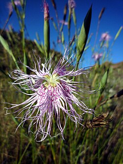 - Pracht-Nelke (Dianthus superbus L.): Sie ist mit mehreren Unterarten in Europa, China, Japan, Kasachstan, Korea, in der Mongolei, in Sibirien und Russlands Fernen Osten verbreitet.[4]