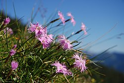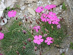 | Habitus Taxonym: Dianthus alpinus ss Fischer et al. EfÖLS 2008 ISBN 978-3-85474-187-9 Fundort: Ötscher, Bezirk Scheibbs, Niederösterreich - ca. 1500 m ü. A. Standort: alpiner Rasen | Eigenes Werk | Stefan.lefnaer | Datei:Dianthus alpinus sl1.jpg | |