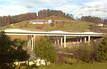 | Im Vordergrund der Talübergang der A2 in Nestelbach bei Graz, im Hintergrund das Kriegsopferdenkmal | Eigenes Werk | Andi oisn | Datei:Brücke A2 und Kriegsopferdenkmal.jpg | |